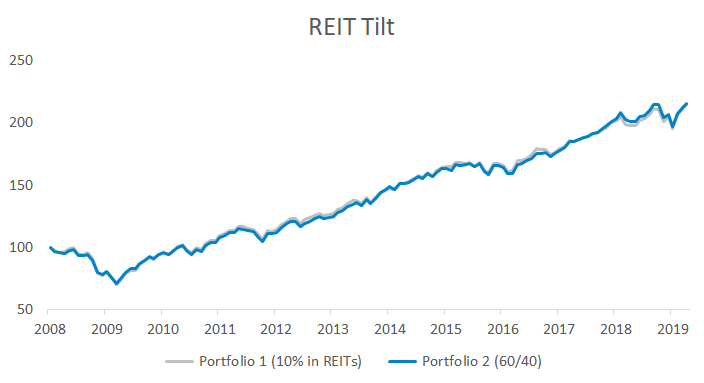 Real estate investment trusts tout stock-like returns, high dividends, and low correlation to stocks. Let’s say an investor carved out 10% of their equity exposure and allocated it to REITs. Would it have made a difference over the past decade?